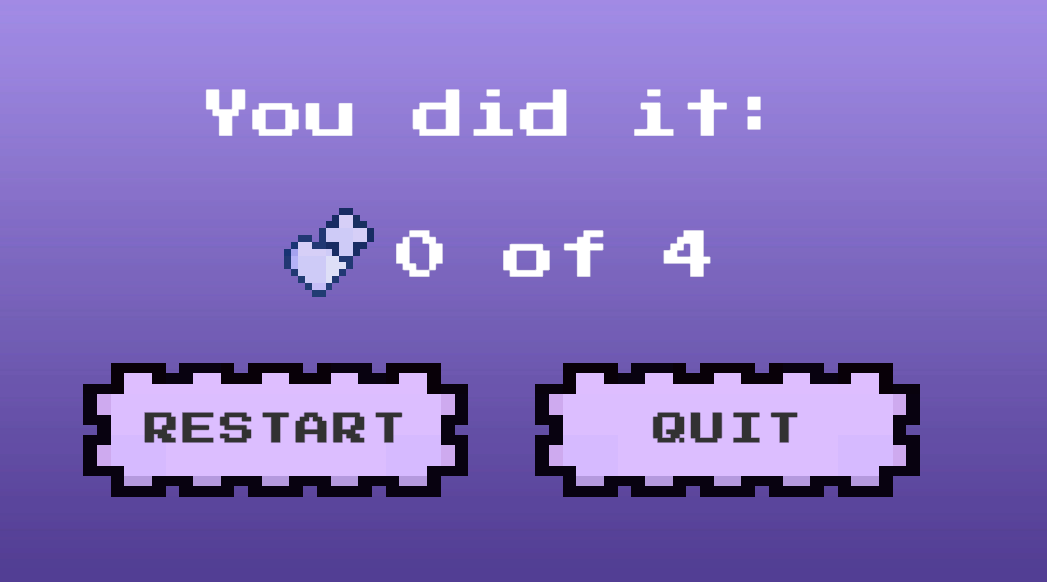 Una vez se termina el juego, aparecerán dos botones uno para reiniciar el juego desde el inicio y otro para salir del juego. Además, el jugador podrá salir en cualquier momento de la partida abriendo el menú de pausa con la tecla "Esc" o la tecla